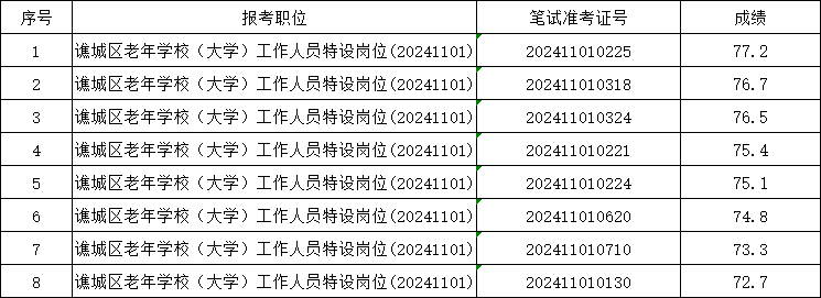 根據(jù)《2024年譙城區(qū)老年學校(大學)工作人員特設崗位公開招聘》有關規(guī)定,現(xiàn)將2024年譙城區(qū)老年學校(大學)工作人員特設崗位公開招聘擬入圍體檢、考察工作有關事項公告如下: